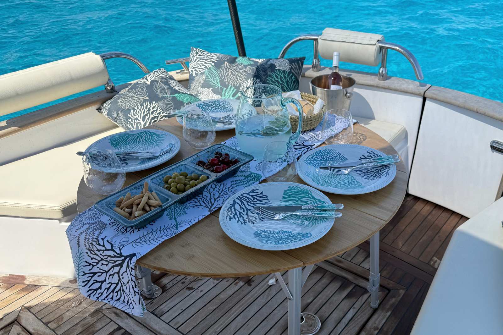 Optionales COMFORT-PAKET für 350 € pro Tag: Handtuchservice, alle alkoholfreien Getränke, Eis, Schnorchelausrüstung, Beiboot inklusive Treibstoff, JOBE-Decke, Stand-up-Paddleboard, Snacks und Sonnencreme.