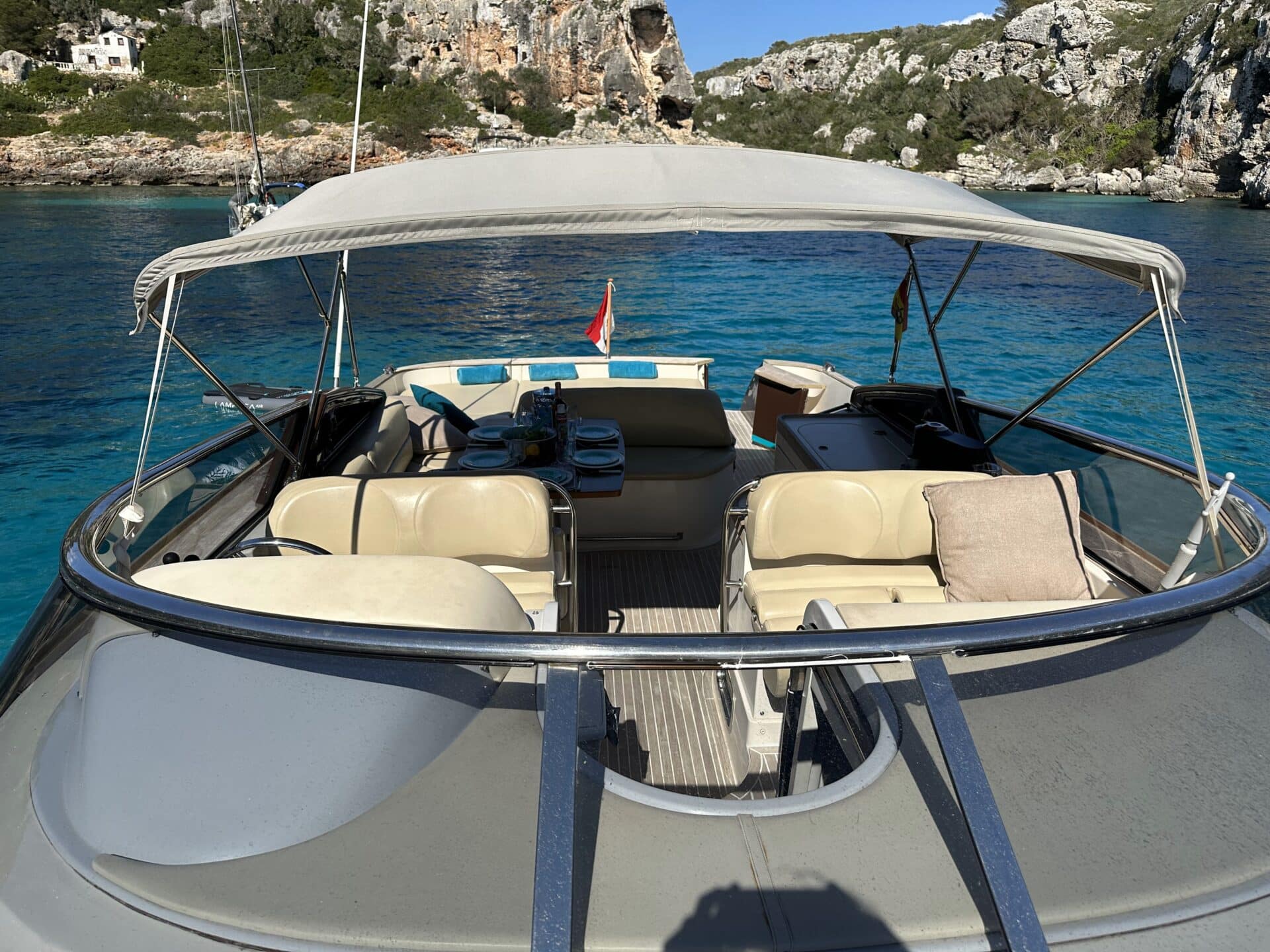 L’imbarcazione è dotata di un tracker GPS per registrare le ore di funzionamento dei motori. Verrà applicata una tariffa di 180 €/h per ogni ora di funzionamento dei motori. Al termine della tua uscita, ti verrà inviato il percorso effettuato e il totale delle ore motore. Il grande vantaggio è che i clienti possono godersi appieno le 8 ore di uscita senza dover andare a fare rifornimento a fine giornata – c’è sempre più di un’ora di attesa nell’unica stazione di servizio di Mahon.