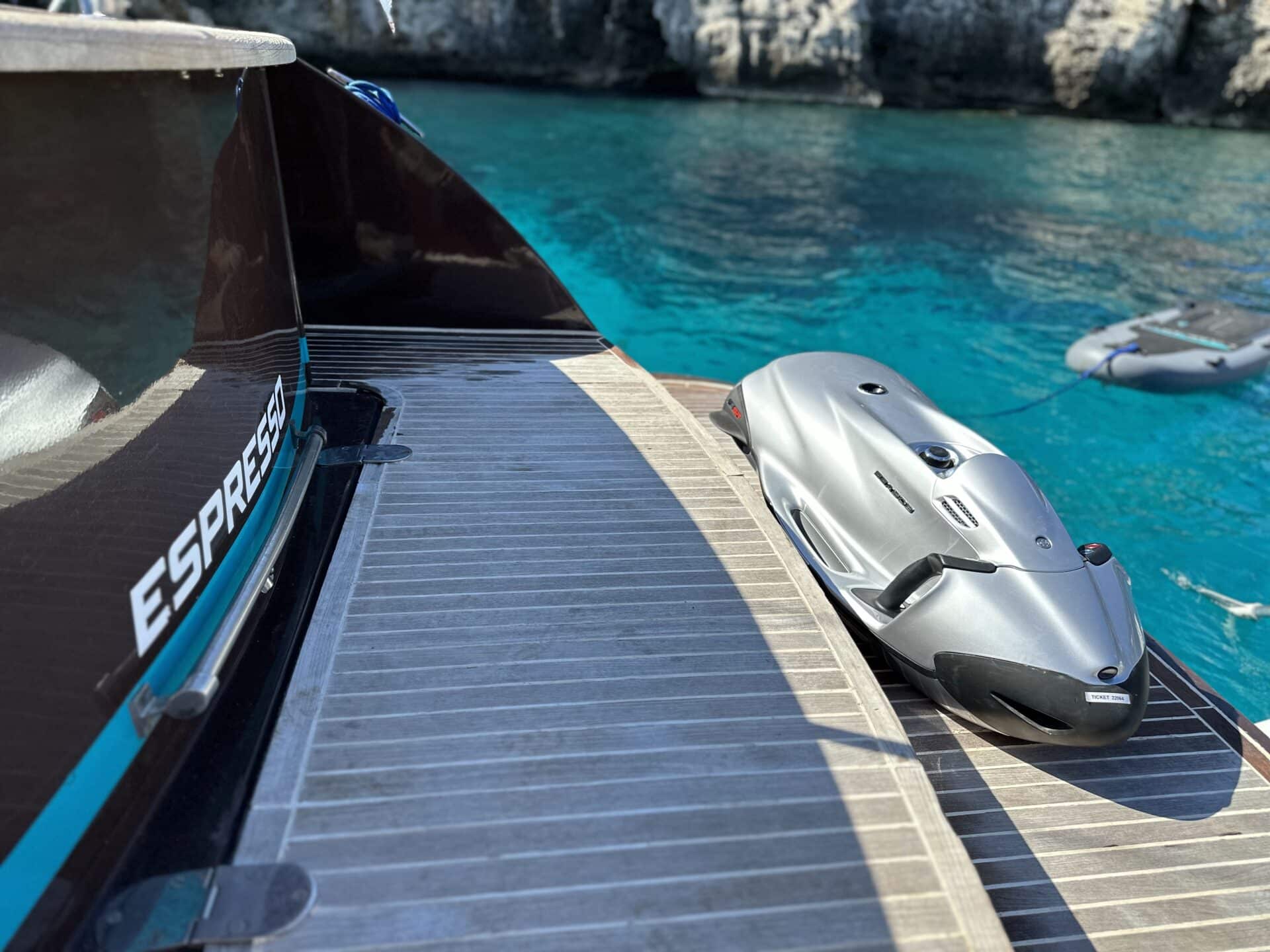 Una giornata in mare è ancora più divertente con qualche gioco acquatico. Abbiamo extra come Seabob, paddle surf, piscina anti-meduse, eFoil, giochi gonfiabili e la tavola elettrica Lampuga (45 km/h). Possiamo anche organizzare servizi di catering.