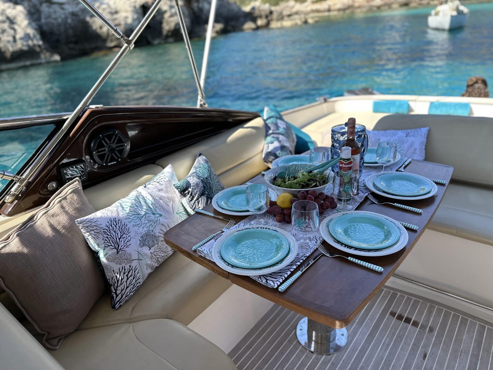 Il noleggio è di 8 ore, normalmente dalle 10:00 alle 18:00. Puoi scegliere di partire alle 11:00 e il charter terminerà alle 19:00. Se desiderate partire dopo le 13:00, l’uscita sarà più breve. La barca deve rientrare all’ormeggio al più tardi alle 20:00. C’è la possibilità di prolungare la giornata in mare oltre le ore 20:00 per godersi il tramonto; il prezzo per il tempo extra è di 250 € all’ora.
